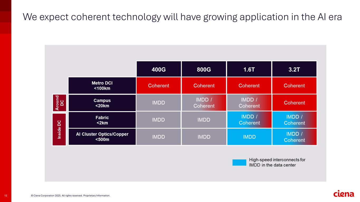 15 © Ciena Corporation 2025. All rights reserved. Proprietary Information. We expect coherent technology will have growing application in the AI era