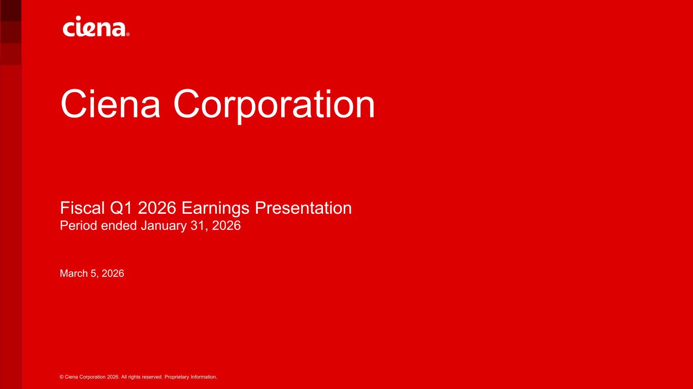 © Ciena Corporation 2026. All rights reserved. Proprietary Information. Ciena Corporation Fiscal Q1 2026 Earnings Presentation Period ended January 31, 2026 March 5, 2026