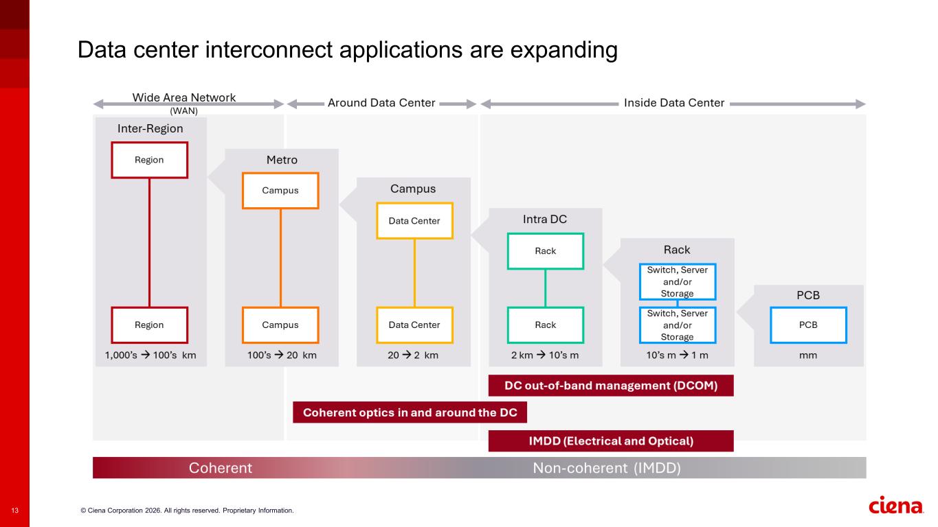 © Ciena Corporation 2026. All rights reserved. Proprietary Information.13 Data center interconnect applications are expanding