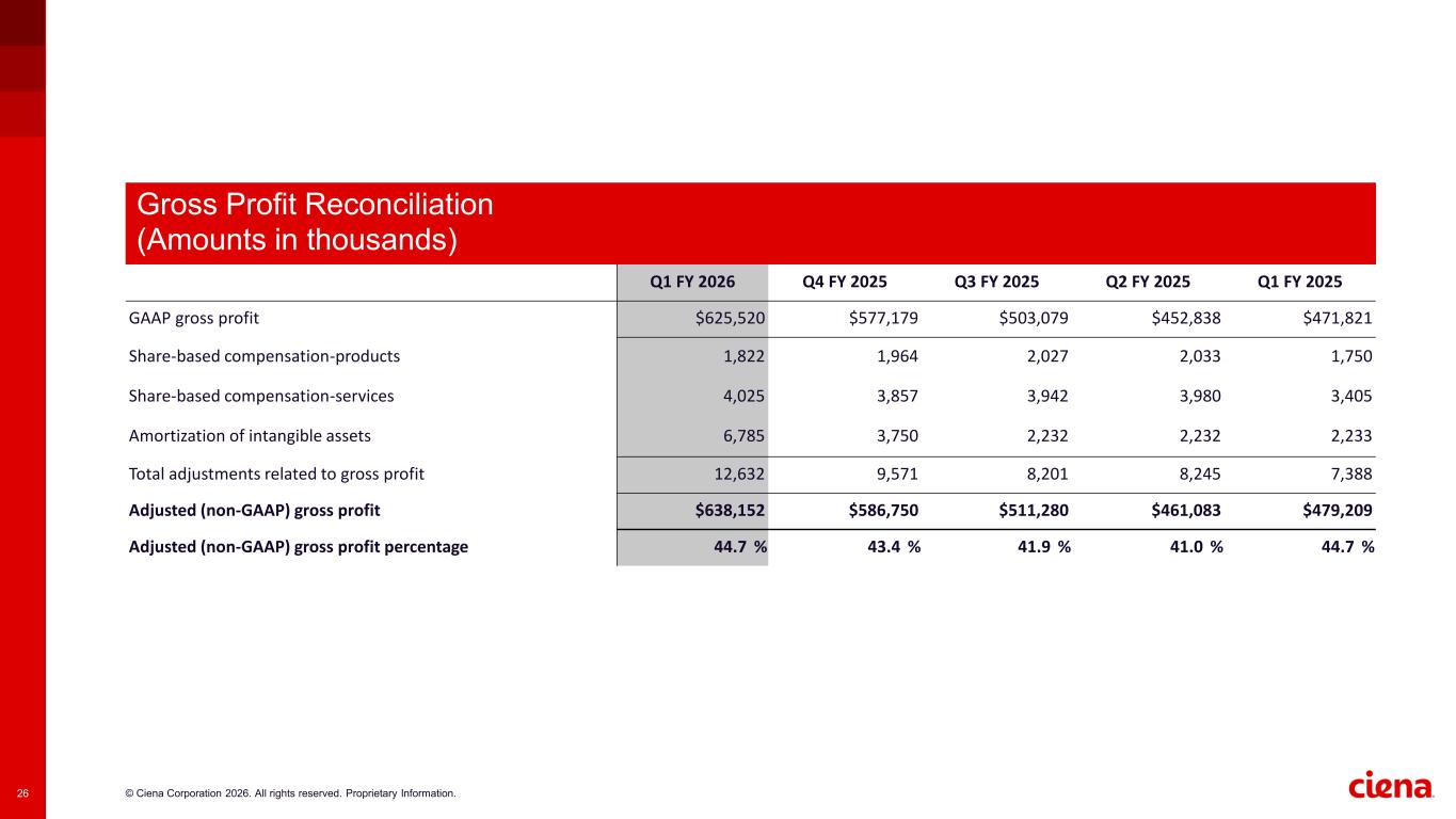 © Ciena Corporation 2026. All rights reserved. Proprietary Information. Q1 FY 2026 appendix