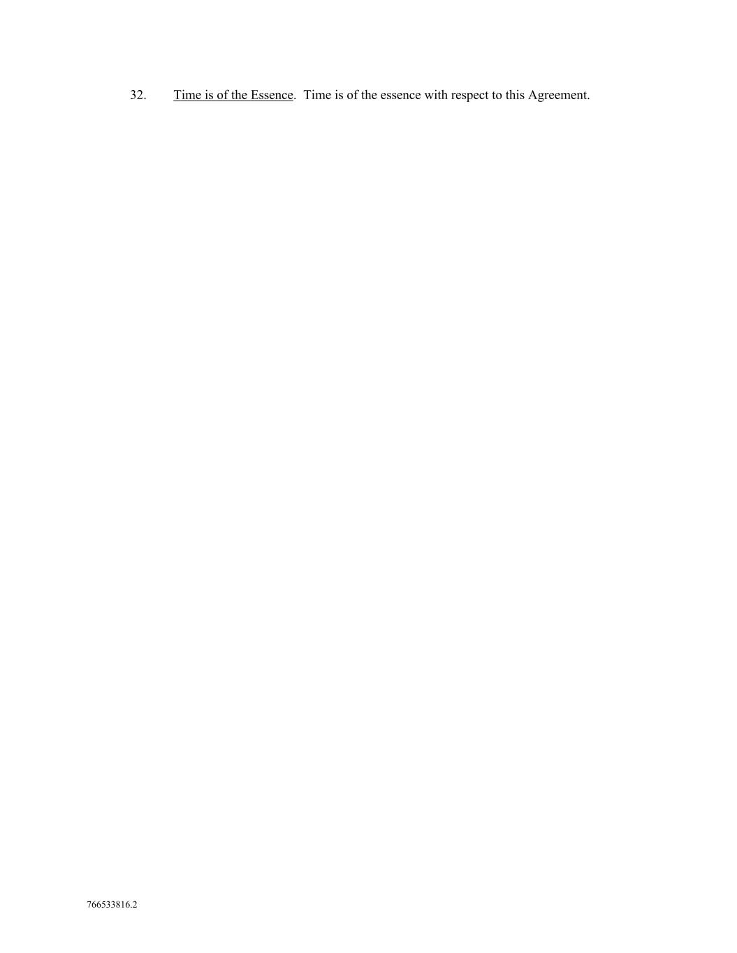 766533816.2 32. Time is of the Essence. Time is of the essence with respect to this Agreement.