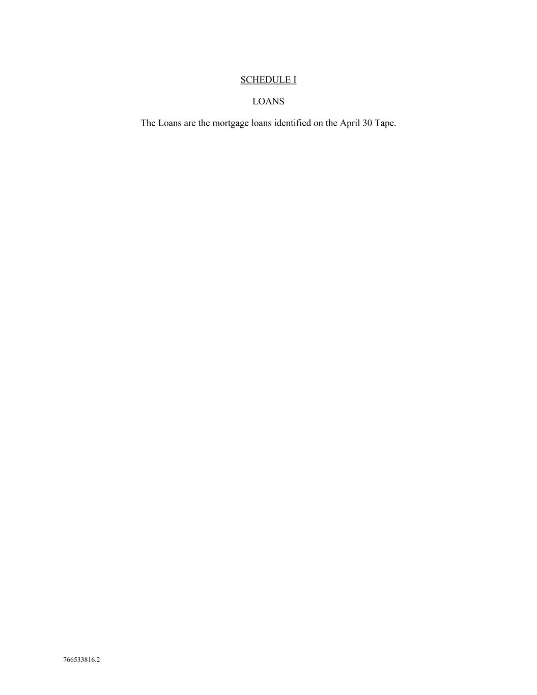 766533816.2 SCHEDULE I LOANS The Loans are the mortgage loans identified on the April 30 Tape.