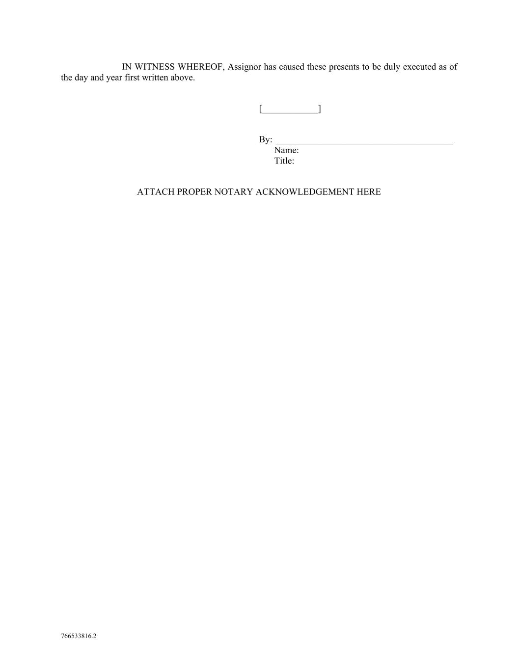 766533816.2 IN WITNESS WHEREOF, Assignor has caused these presents to be duly executed as of the day and year first written above. [____________] By: ______________________________________ Name: Title: ATTACH PROPER NOTARY ACKNOWLEDGEMENT HERE