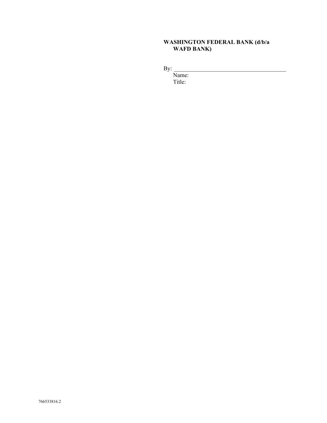 766533816.2 WASHINGTON FEDERAL BANK (d/b/a WAFD BANK) By: ______________________________________ Name: Title: