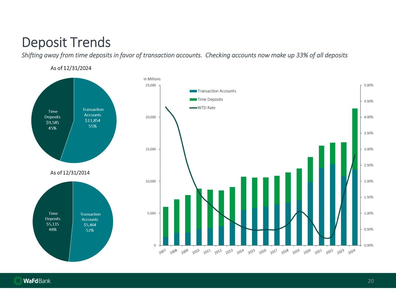 20 Deposit Trends  Shifting away from time deposits in favor of transaction accounts.  Checking accounts now make up 33% of all deposits