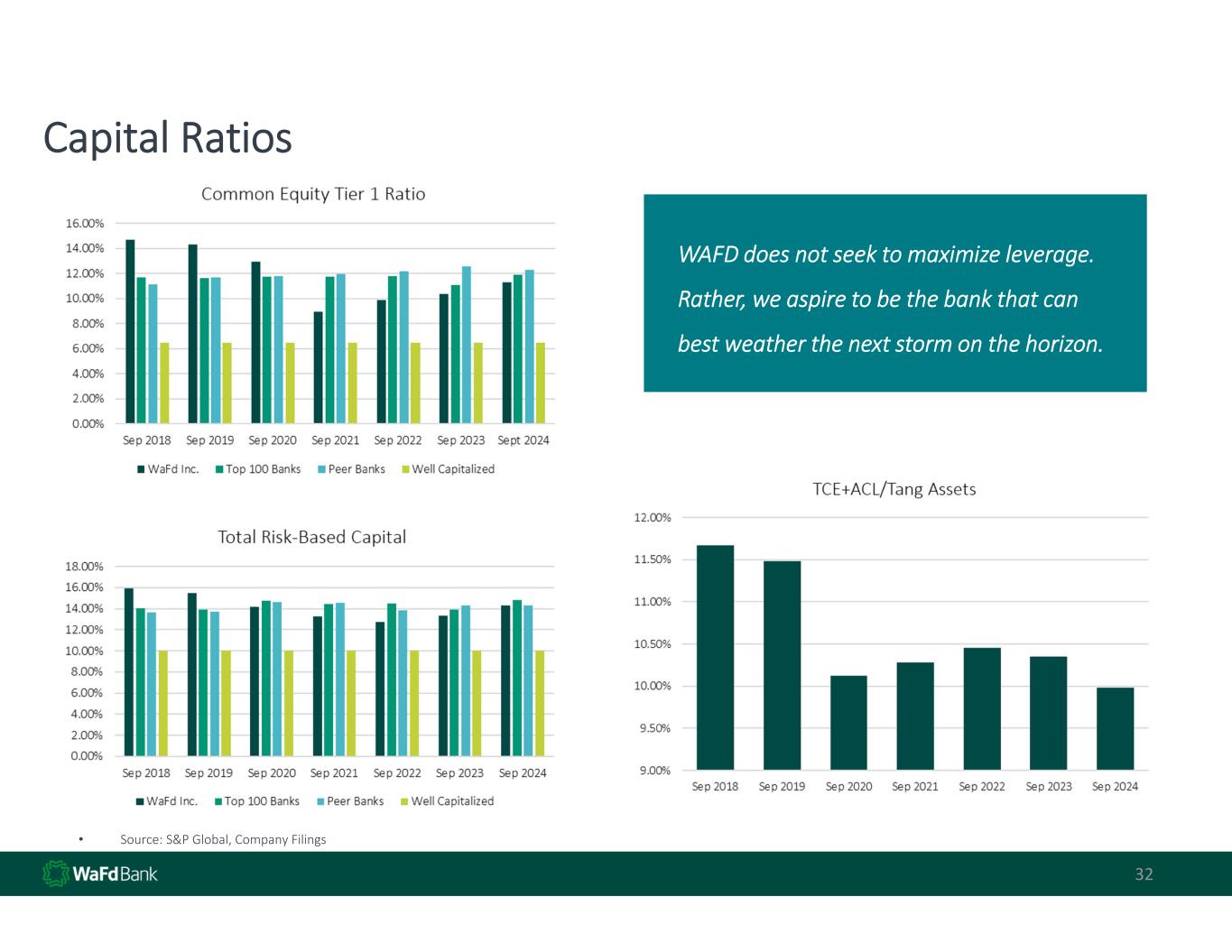 32 Capital Ratios WAFD does not seek to maximize leverage.  Rather, we aspire to be the bank that can  best weather the next storm on the horizon. • Source: S&P Global, Company Filings