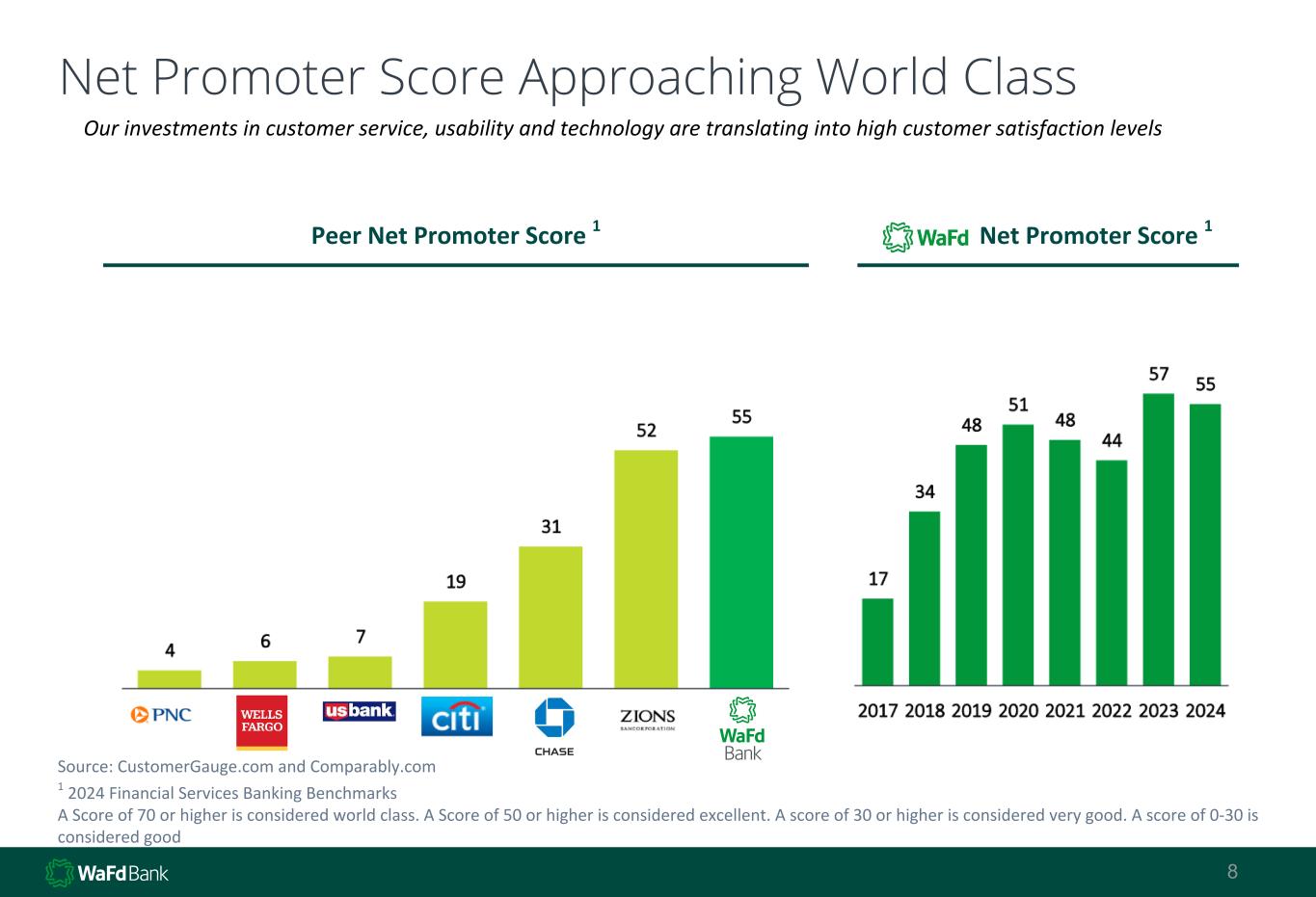 Net Promoter Score Approaching World Class 8 Our investments in customer service, usability and technology are translating into high customer satisfaction levels Source: CustomerGauge.com and Comparably.com WaFdaa Net Promoter Score 1Peer Net Promoter Score 1 1 2024 Financial Services Banking Benchmarks A Score of 70 or higher is considered world class. A Score of 50 or higher is considered excellent. A score of 30 or higher is considered very good. A score of 0-30 is considered good 8