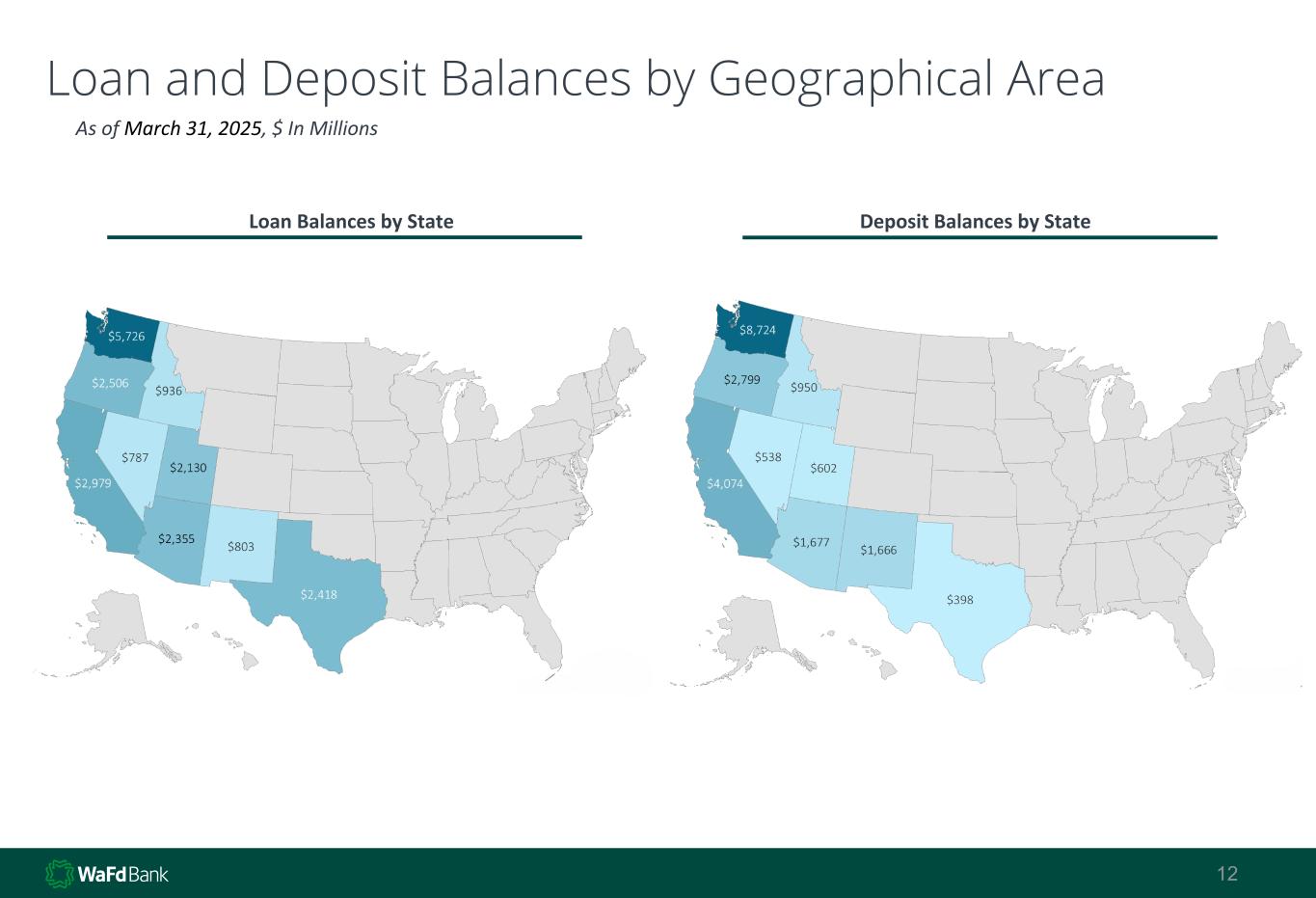 12 Loan and Deposit Balances by Geographical Area As of March 31, 2025, $ In Millions Loan Balances by State Deposit Balances by State