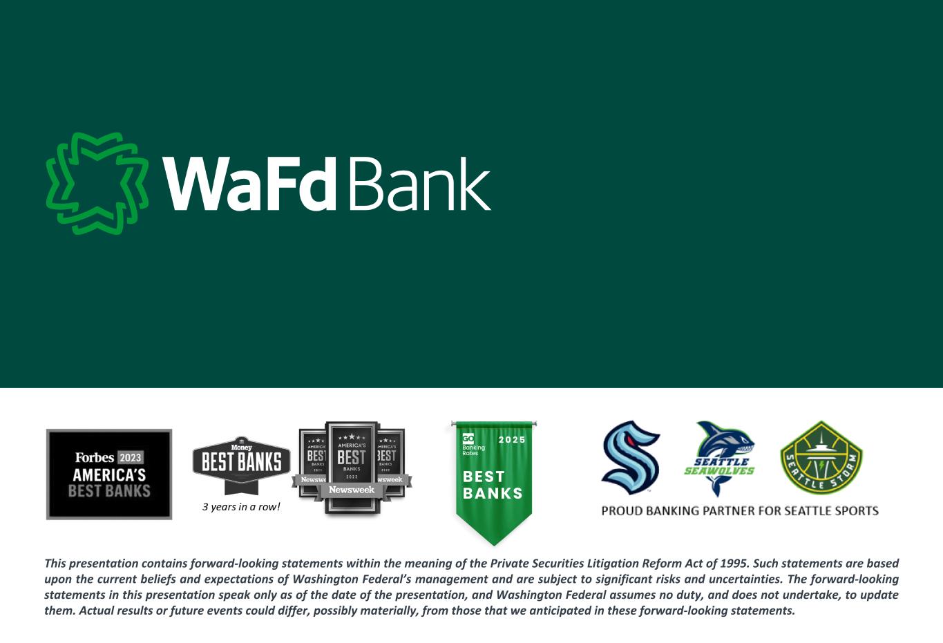 This presentation contains forward-looking statements within the meaning of the Private Securities Litigation Reform Act of 1995. Such statements are based upon the current beliefs and expectations of Washington Federal’s management and are subject to significant risks and uncertainties. The forward-looking statements in this presentation speak only as of the date of the presentation, and Washington Federal assumes no duty, and does not undertake, to update them. Actual results or future events could differ, possibly materially, from those that we anticipated in these forward-looking statements.