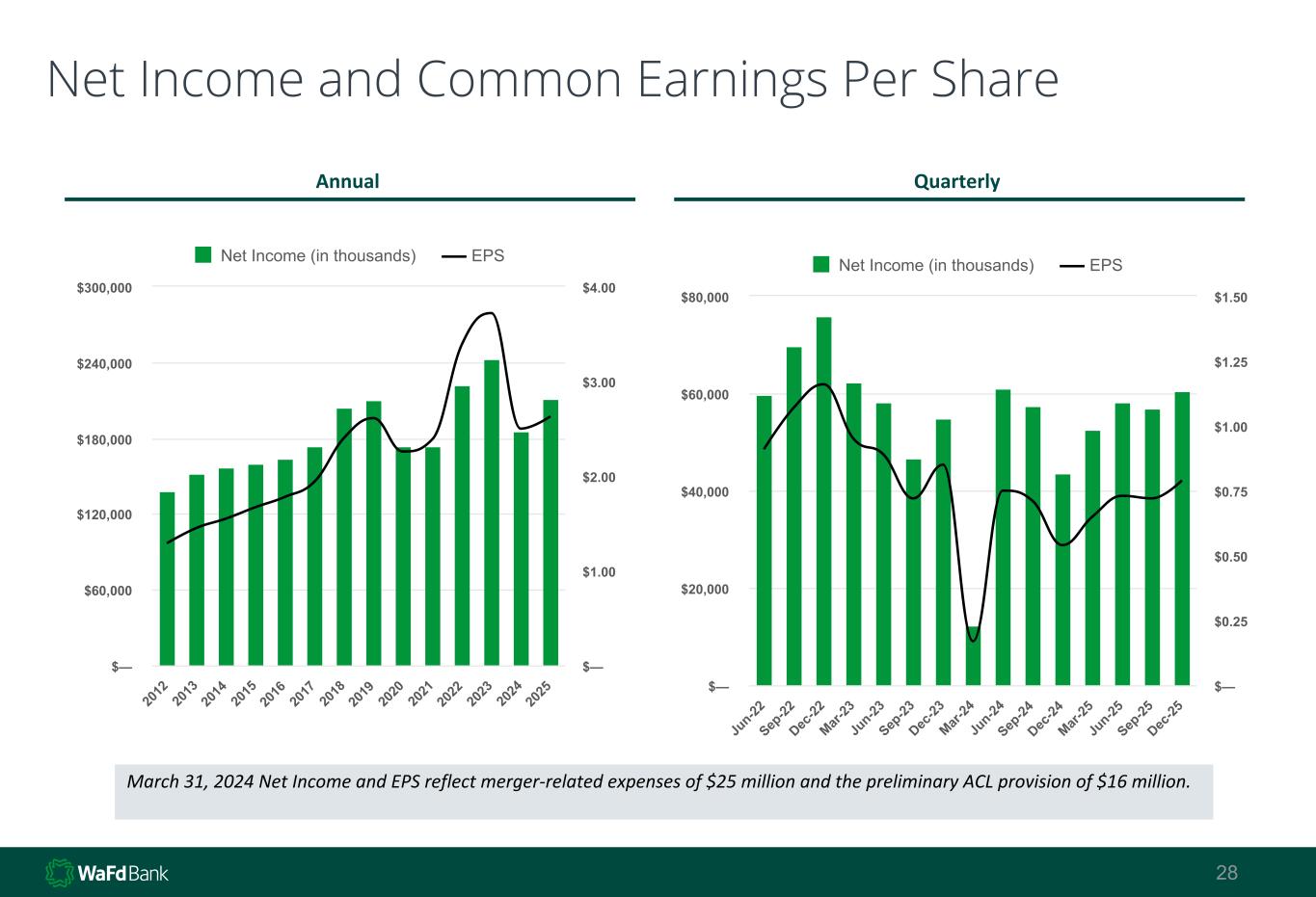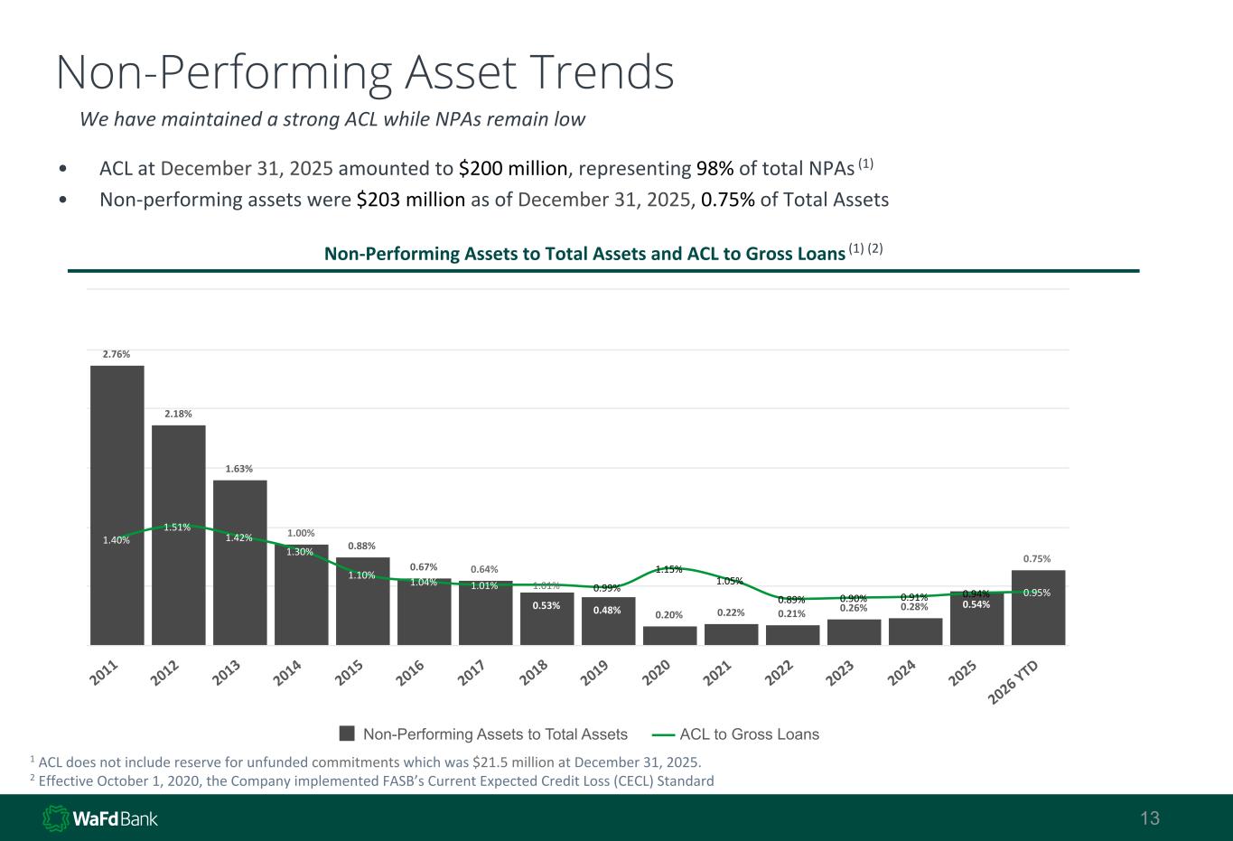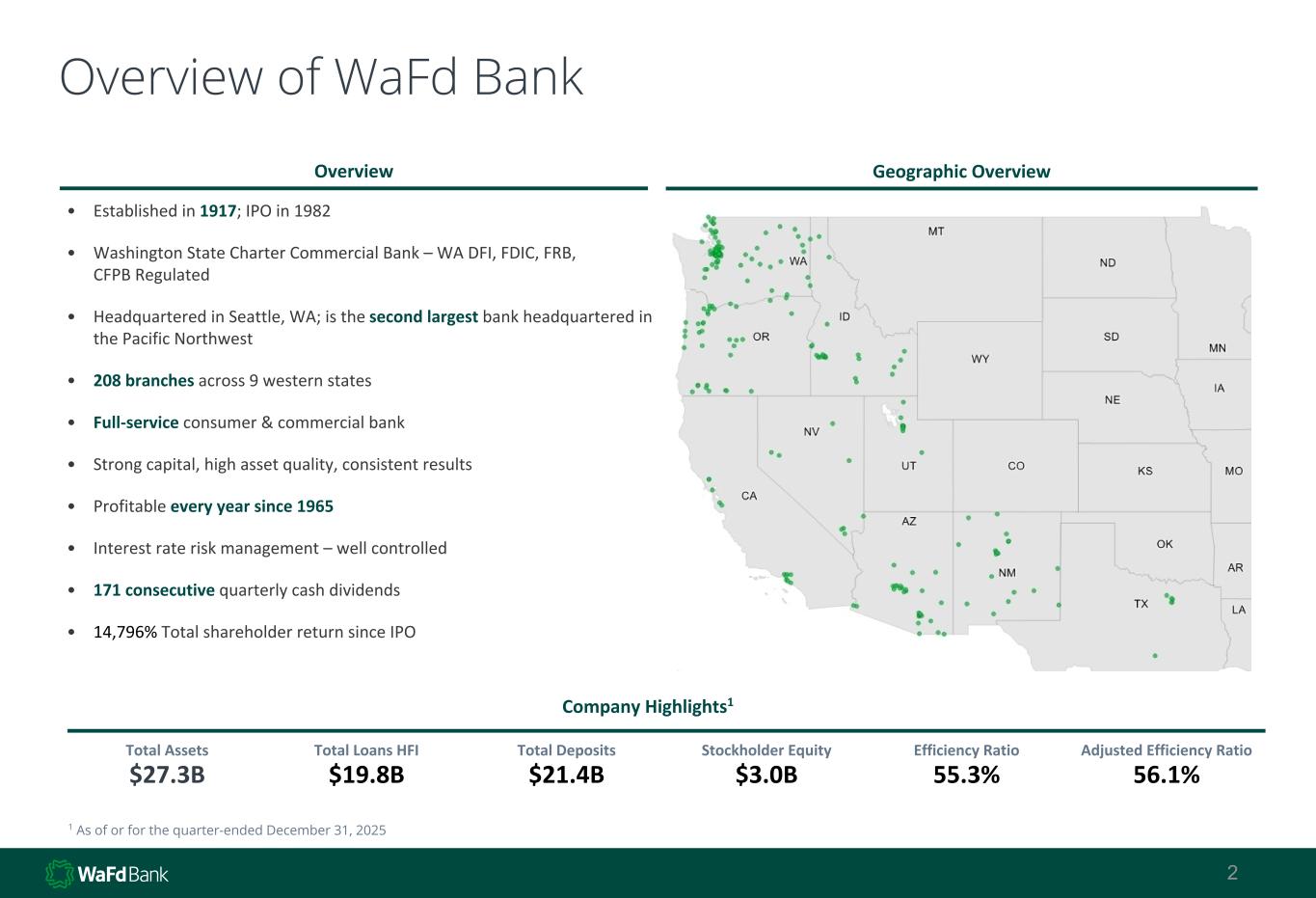 This presentation contains forward-looking statements within the meaning of the Private Securities Litigation Reform Act of 1995. Such statements are based upon the current beliefs and expectations of WaFd’s management and are subject to significant risks and uncertainties. The forward-looking statements in this presentation speak only as of the date of the presentation, and WaFd assumes no duty, and does not undertake, to update them. Actual results or future events could differ, possibly materially, from those that we anticipated in these forward-looking statements. 1 Investor Presentation As of December 31, 2025