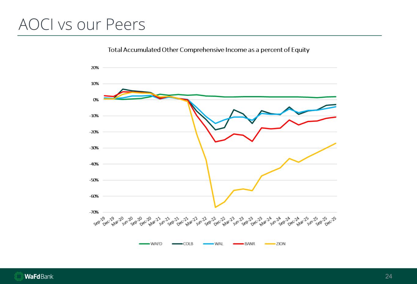 Cost of Deposits Through the Current Fed Rate Cycle 23 0.23% 0.42% 0.79% 1.34% 1.77% 2.07% 2.42% 2.65% 2.95% 3.11% 3.02% 2.89% 2.77% 2.67% 2.53% 0.94% 2.35% 3.82% 4.64% 5.07% 5.40% 5.40% 5.40% 5.40% 5.33% 4.71% 4.50% 4.50% 4.46% 4.02% Cost of All Deposits Avg Fed Funds (Upper) Jun-22 Sep-22 Dec-22 Mar-23 Jun-23 Sep-23 Dec-23 Mar-24 Jun-24 Sep-24 Dec-24 Mar-25 Jun-25 Sep-25 Dec-25 —% 1.00% 2.00% 3.00% 4.00% 5.00% 6.00%
