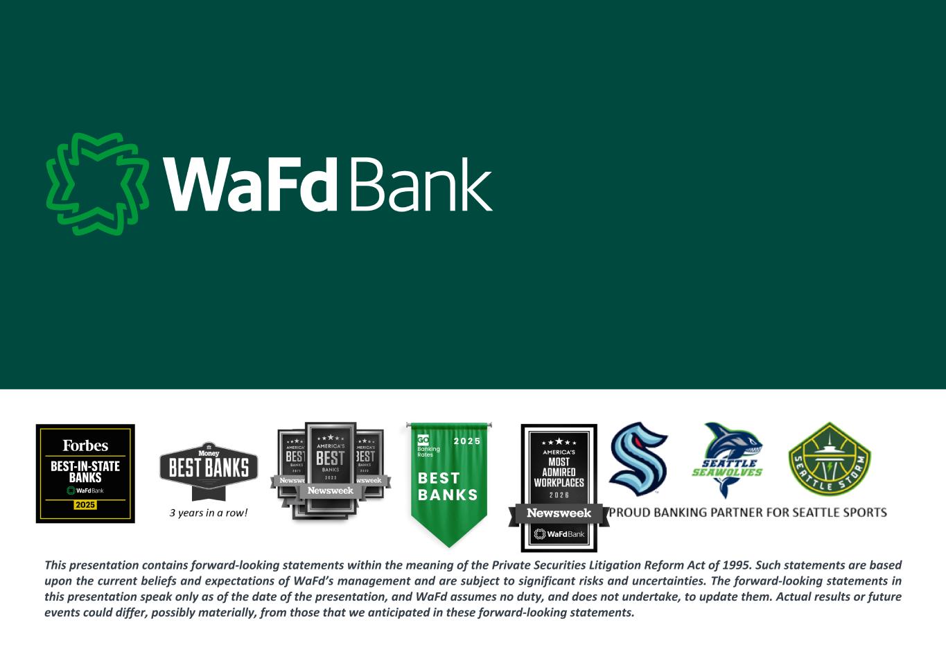 This presentation contains forward-looking statements within the meaning of the Private Securities Litigation Reform Act of 1995. Such statements are based upon the current beliefs and expectations of WaFd’s management and are subject to significant risks and uncertainties. The forward-looking statements in this presentation speak only as of the date of the presentation, and WaFd assumes no duty, and does not undertake, to update them. Actual results or future events could differ, possibly materially, from those that we anticipated in these forward-looking statements.