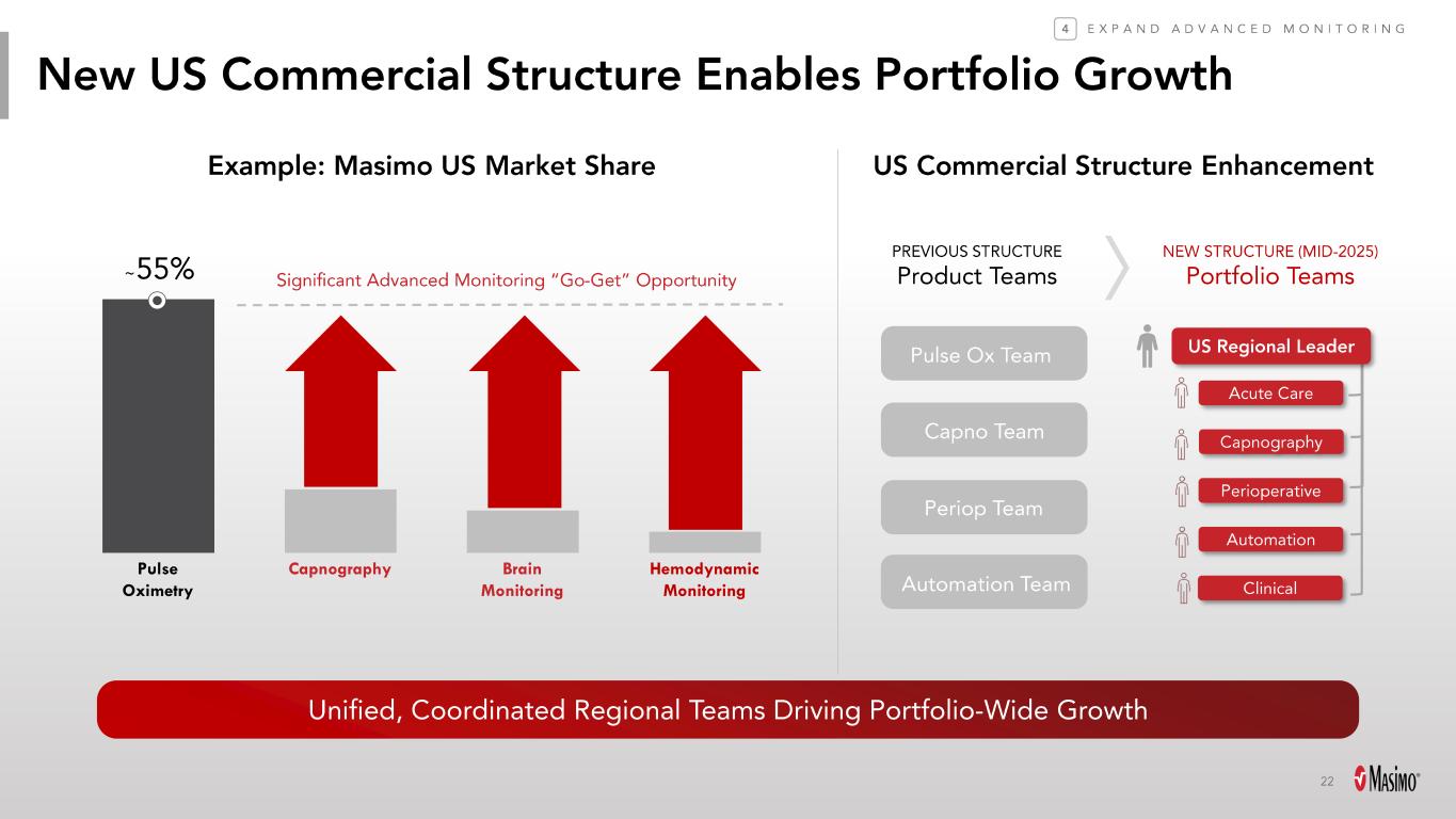 EXPAND ADVANCED MONITORING4 Example: Masimo US Market Share Pulse Oximetry Capnography Brain Monitoring Hemodynamic Monitoring ~ 55% Significant Advanced Monitoring “Go -Get” Opportunity New US Commercial Structure Enables Portfolio Growth US Commercial Structure Enhancement Unified, Coordinated Regional Teams Driving Portfolio -Wide Growth PREVIOUS STRUCTURE Product Teams Capno Team NEW STRUCTURE (MID -2025) Portfolio Teams Pulse Ox Team Periop Team Automation Team Acute Care Capnography Perioperative Automation Clinical US Regional Leader 22