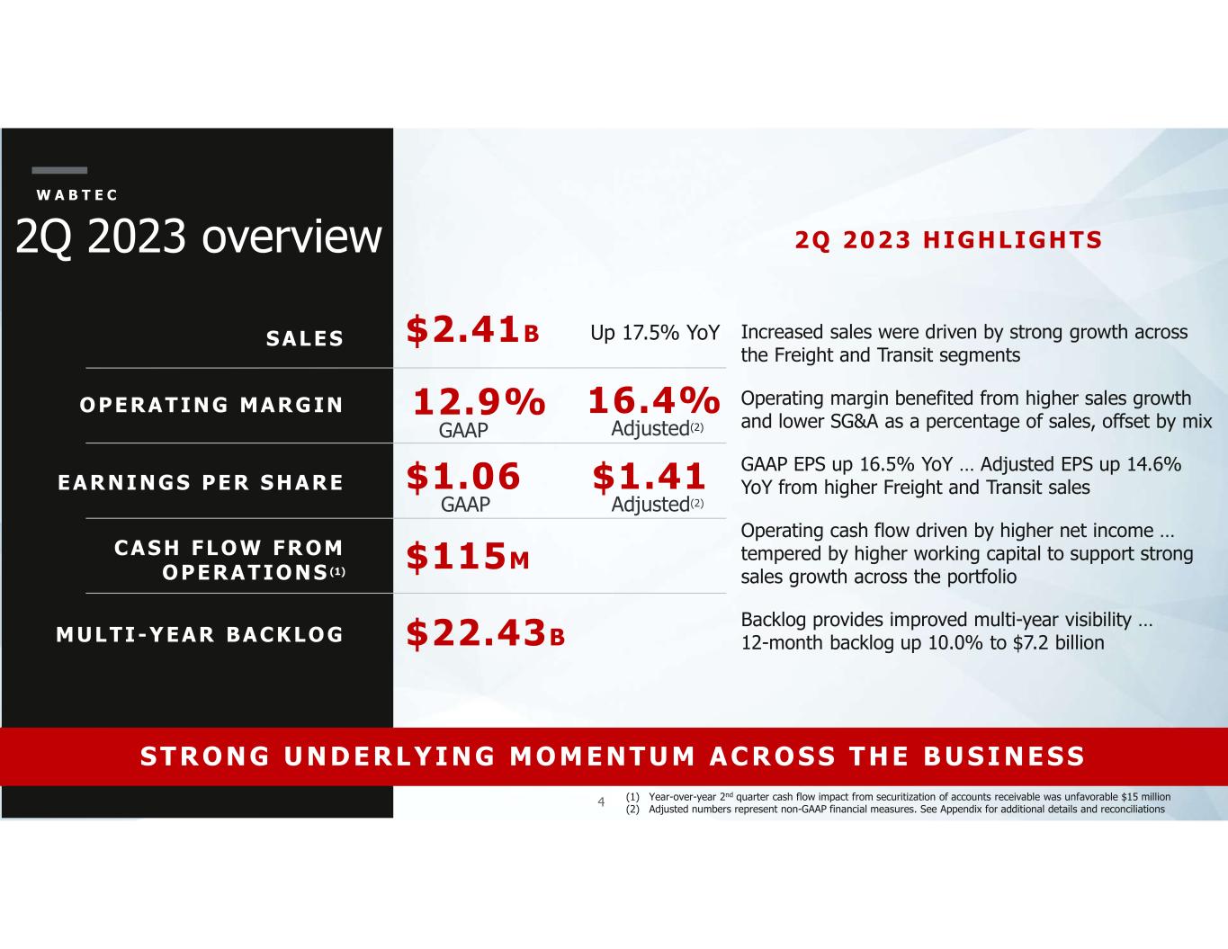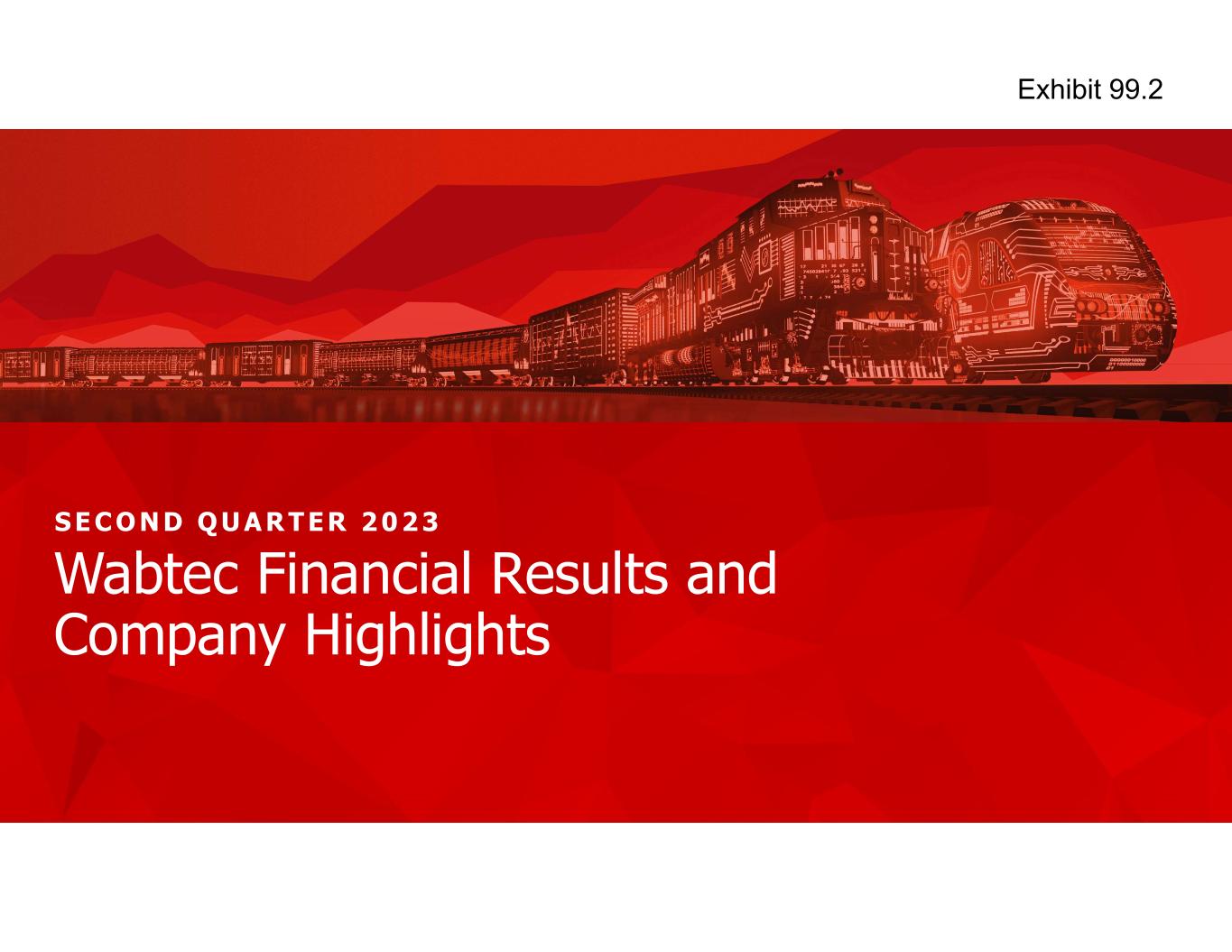 1 S E C O N D Q U A R T ER 2 0 2 3 Wabtec Financial Results and Company Highlights