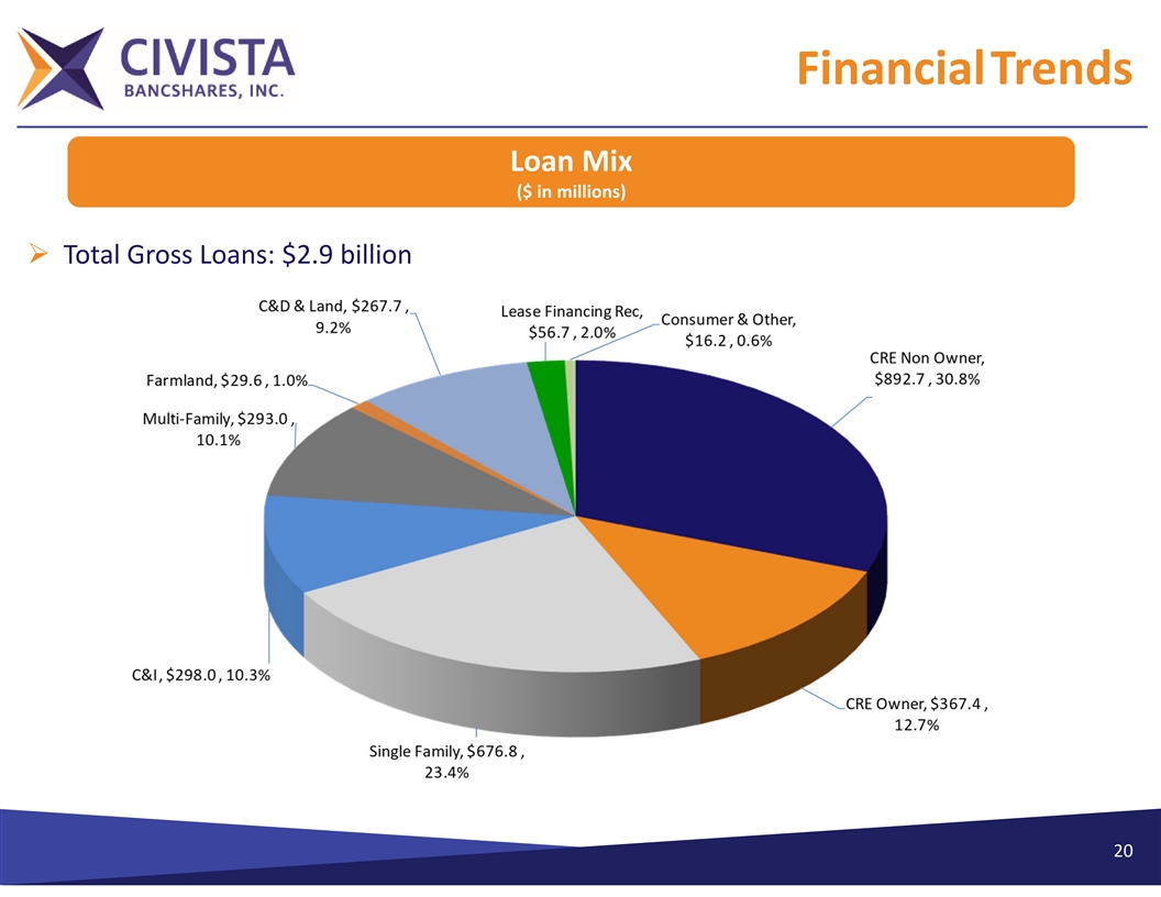 FinancialTrends Loan Mix ($ in millions) Ø Total Gross Loans: $2.9billion 20