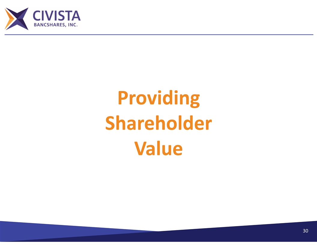 Financial Trends Capital Management Ø November 2021 issued $75 million in 3.25% subordinated debt Ø Authorized $13.5 million stock repurchase plan in April 2024 Ø During 2023, 84,230 shares, 0.54% of the shares outstanding on December 31, 2023, have been repurchased for $1.5 million at a weighted average price of $17.77 (118% of TBV) Ø Increased the quarterly common dividend to $0.16 per share in the third quarter 2023 ($s in thousands, except per share data) For the Years Ended December 31, 2019 2020 2021 2022 2023 2024 Q1 Total Equity $330,126 $350,108 $355,212 $334,835 $372,002 $369,659 1 11.01% 9.88% 9.25% 5.83% 6.36% 6.28% TCE / TA 2 10.64% 9.57% 11.61% 12.47% 12.50% 10.36% ROAE 1. TCE Non‐GAAP reconciliation on page 39 29 2. LTM basis