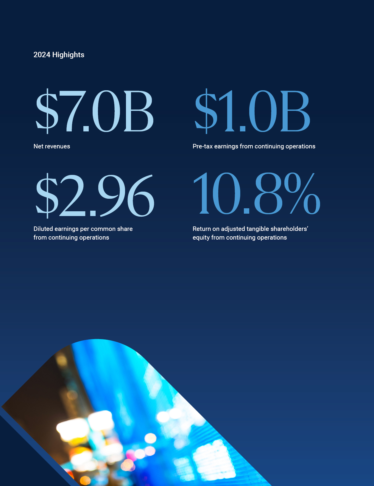 2024 S H A R EHO L D ER L E T T ER 5 J EF F ER I E S  Diluted earnings per common share from continuing operations  $7.0B $1.0B  Net revenues Pre-tax earnings from continuing operations  $2.96 10.8%  Return on adjusted tangible shareholders’ equity from continuing operations  2024 Highights