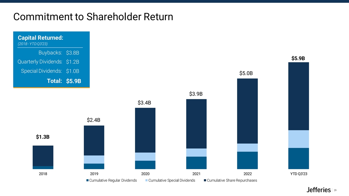 A Step Change in Our Core Business’ Revenue (1)(2) Core Investment Banking & Capital Markets Revenues +46% Since 2019 (1)(2) Core Investment Banking Revenue $2.1B +40% $1.5B $0.3 $0.5 $0.4 $0.4 $1.3 $0.8 2019 LTM Q3'23 Advisory Equity Underwriting Debt Underwriting (2) Capital Markets Revenue $2.2B +51% $1.5B $1.1 $0.7 $1.1 $0.8 Equities Fixed Income 2019 LTM Q3'23 28 See pages 65-70 at the back of this presentation for endnotes.
