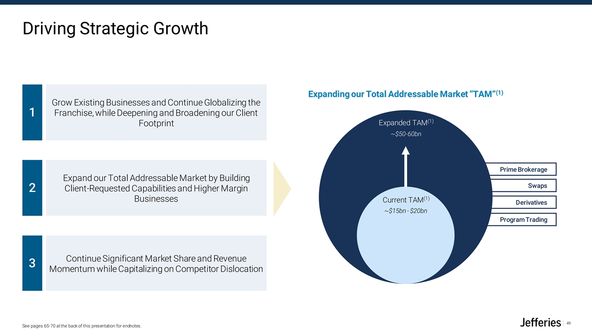 Driving Strategic Growth (1) Expanding our Total Addressable Market “TAM” Grow Existing Businesses and Continue Globalizing the Franchise, while Deepening and Broadening our Client 1 (1) Expanded TAM Footprint ~$50-60bn Prime Brokerage Expand our Total Addressable Market by Building Swaps 2 Client-Requested Capabilities and Higher Margin (1) Businesses Current TAM Derivatives ~$15bn - $20bn Program Trading Continue Significant Market Share and Revenue 3 Momentum while Capitalizing on Competitor Dislocation 49 See pages 65-70 at the back of this presentation for endnotes.