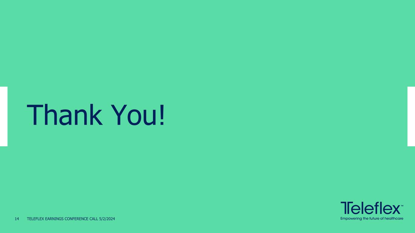TELEFLEX EARNINGS CONFERENCE CALL 5/2/202414 Thank You!