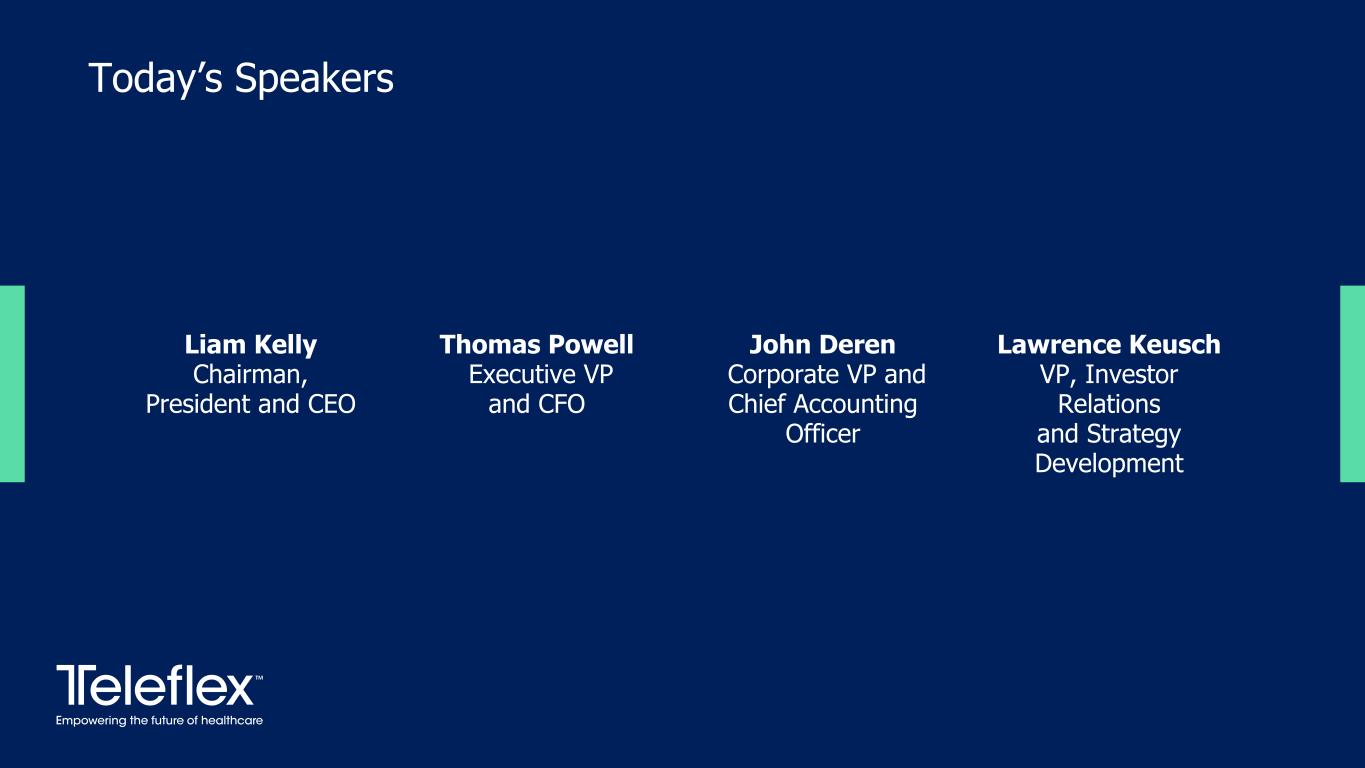 Today’s Speakers Lawrence Keusch VP, Investor Relations and Strategy Development Liam Kelly Chairman, President and CEO Thomas Powell Executive VP and CFO John Deren Corporate VP and Chief Accounting Officer