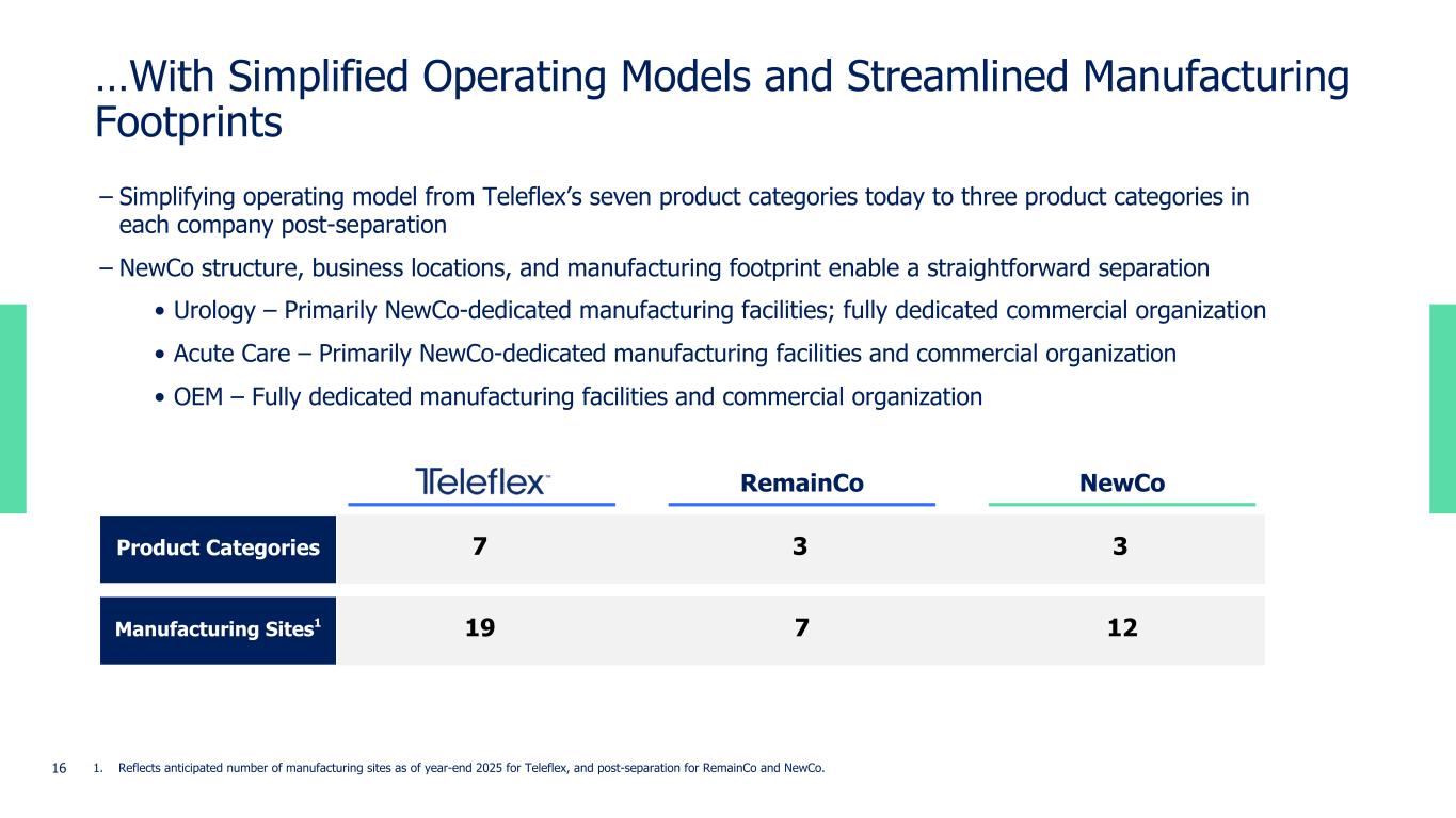 Separation Positions Both Businesses For Greater Corporate Clarity and Enhanced Strategic Focus… Strategic Focus 2024 Pro Forma Revenue | Adjusted Gross Margin 2024 Pro Forma Revenue by Category NewCo ~$2.1bn | Mid-60% ~$1.4bn | Mid-50% Vascular Access1 Interventional Surgical Acute Care3 OEM Urology2 Vascular Access1, Interventional, Surgical Better positioned to capitalize on high-growth, high-acuity, primarily hospital-focused emergent end markets Urology2, Acute Care3, OEM Ability to identify, invest in, and capitalize on opportunities unique to NewCo’s end-markets Note: Financials presented pro forma for acquisition of BIOTRONIK’s vascular intervention business. 1. Vascular Access to include Emergency Medicine portfolio. 2. Urology to include Interventional Urology and bladder management portfolio. 3. Acute Care to include Anesthesia, Respiratory, intra-aortic balloon pump portfolio, and select other products. RemainCo Pro forma for acquisition of BIOTRONIK’s Vascular Intervention business 15