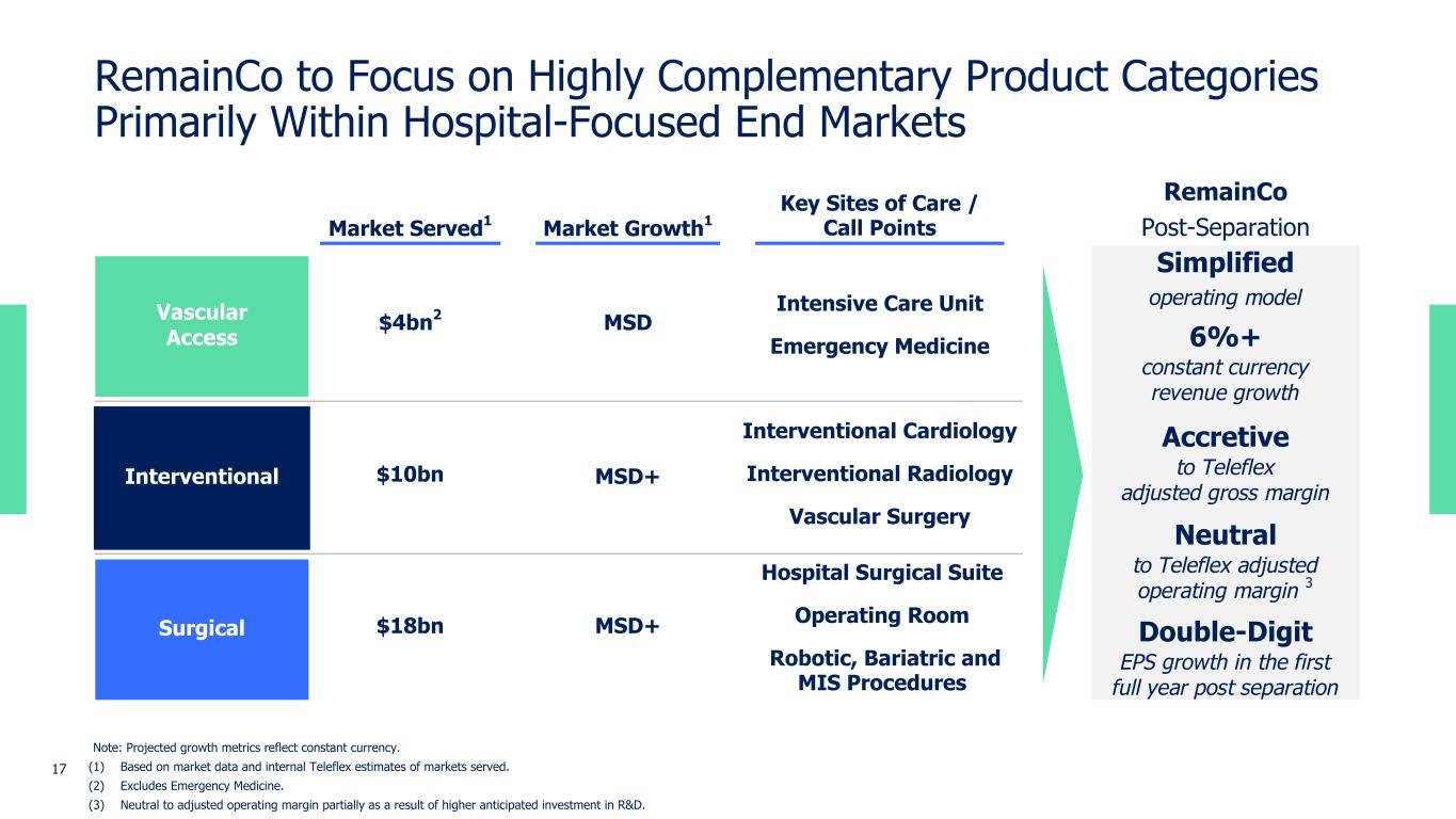 …With Simplified Operating Models and Streamlined Manufacturing Footprints – Simplifying operating model from Teleflex’s seven product categories today to three product categories in each company post-separation – NewCo structure, business locations, and manufacturing footprint enable a straightforward separation • Urology – Primarily NewCo-dedicated manufacturing facilities; fully dedicated commercial organization • Acute Care – Primarily NewCo-dedicated manufacturing facilities and commercial organization • OEM – Fully dedicated manufacturing facilities and commercial organization 16 Product Categories Manufacturing Sites1 7 19 NewCo 3 12 RemainCo 3 7 1. Reflects anticipated number of manufacturing sites as of year-end 2025 for Teleflex, and post-separation for RemainCo and NewCo.