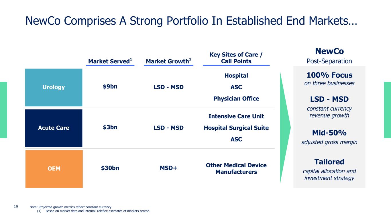 NewCo Comprises A Strong Portfolio In Established End Markets… Urology OEM Acute Care LSD - MSD constant currency revenue growth $9bn $3bn $30bn LSD - MSD MSD+ Tailored capital allocation and investment strategy 19 NewCo Hospital ASC Physician Office Intensive Care Unit Hospital Surgical Suite ASC Other Medical Device Manufacturers Mid-50% adjusted gross margin Note: Projected growth metrics reflect constant currency. (1) Based on market data and internal Teleflex estimates of markets served. Post-Separation Key Sites of Care / Call PointsMarket Served1 Market Growth1 100% Focus on three businesses LSD - MSD