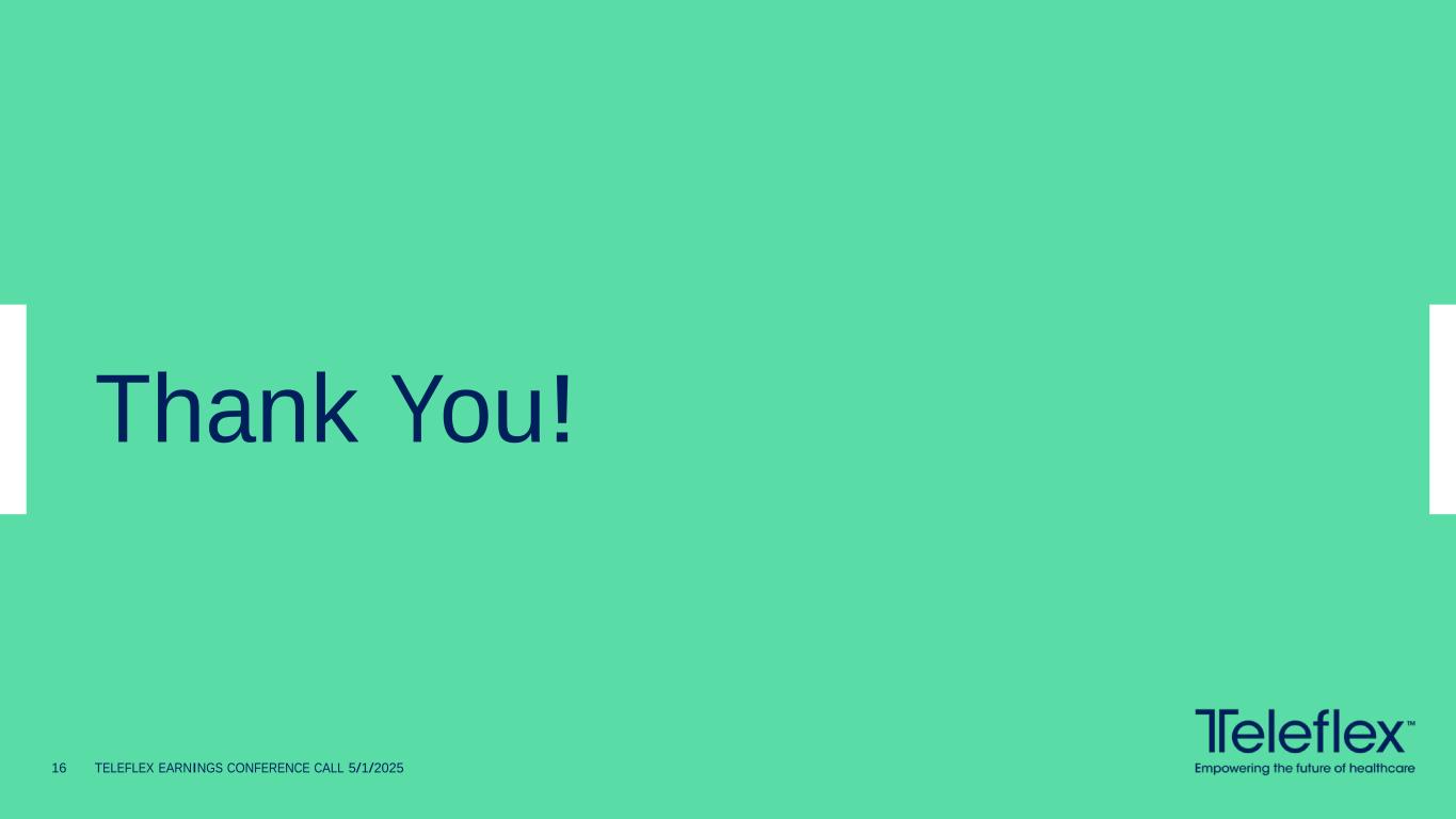 TELEFLEX EARNINGS CONFERENCE CALL 5/1/202516 Thank You!