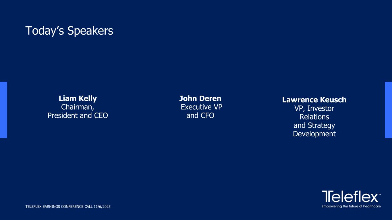 Today’s Speakers TELEFLEX EARNINGS CONFERENCE CALL 11/6/2025 Lawrence Keusch VP, Investor Relations and Strategy Development Liam Kelly Chairman, President and CEO John Deren Executive VP and CFO