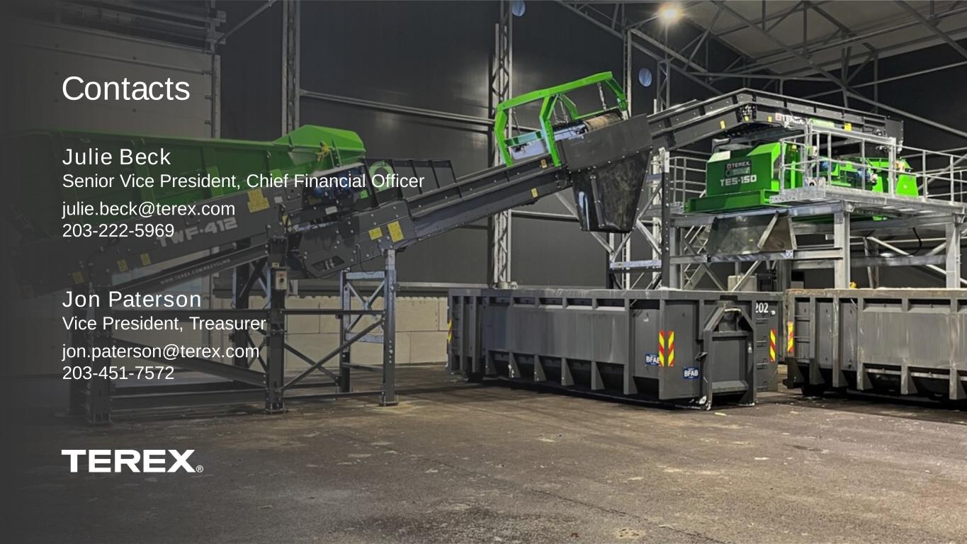 11 Contacts Julie Beck Senior Vice President, Chief Financial Officer julie.beck@terex.com 203-222-5969 Jon Paterson Vice President, Treasurer jon.paterson@terex.com 203-451-7572