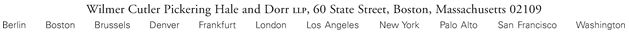 /s/ WILMER CUTLER PICKERING HALE AND DORR LLP
