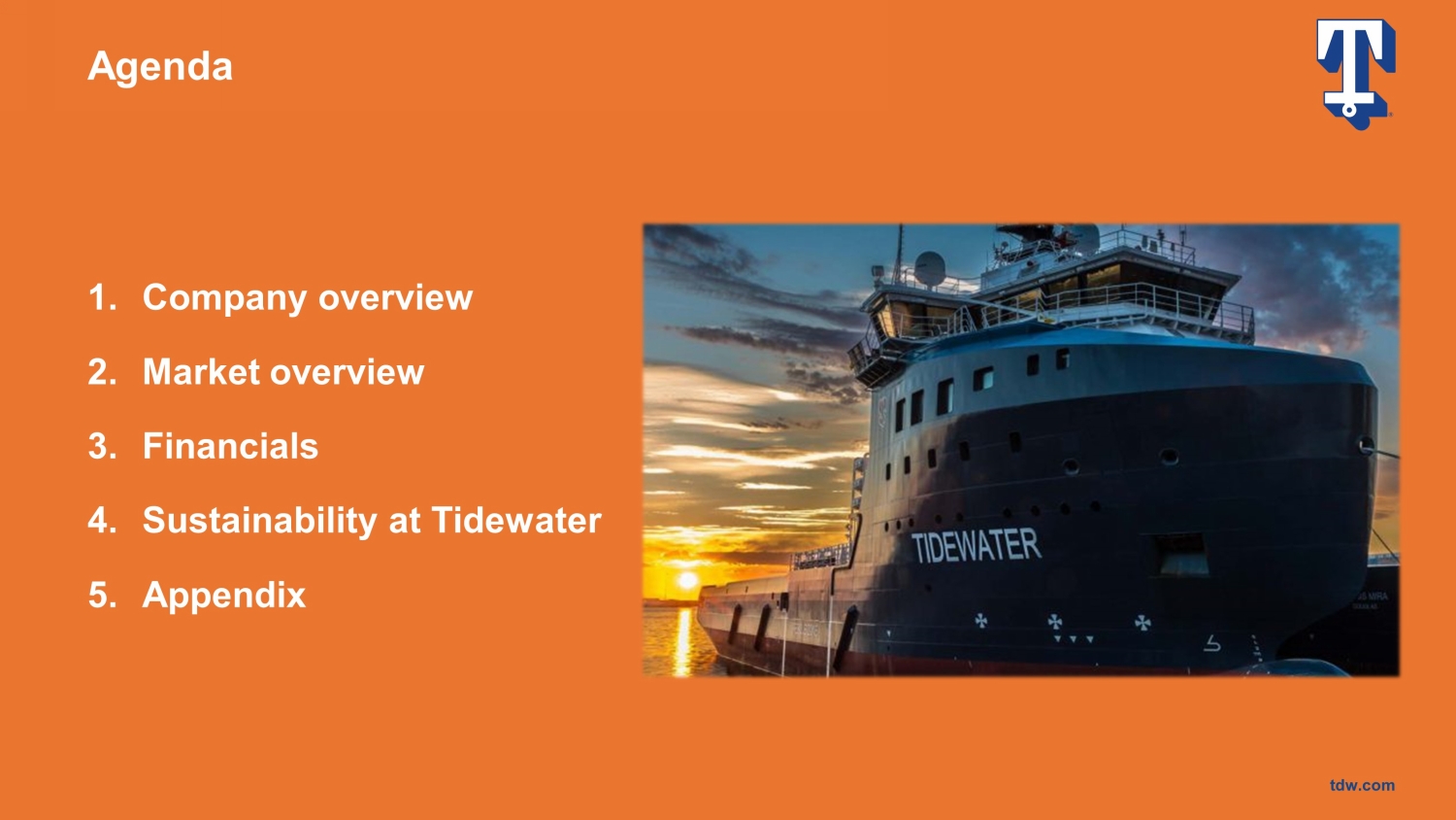 tdw.com tdw.com 1. Company overview 2. Market overview 3. Financials 4. Sustainability at Tidewater 5. Appendix Agenda