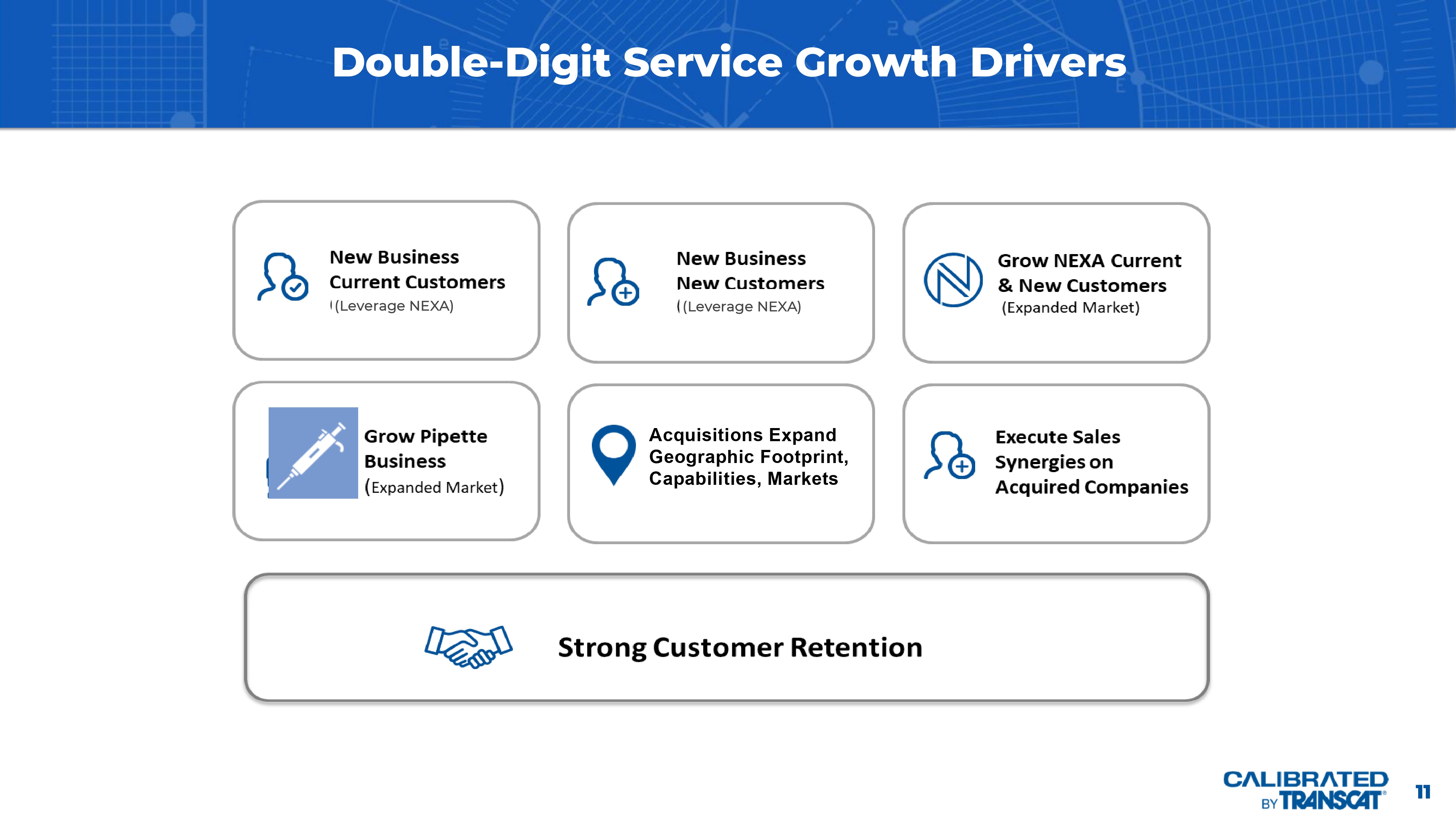 11 Double - Digit Service Growth Drivers Acquisitions Expand Geographic Footprint, Capabilities, Markets (Leverage NEXA) (Leverage NEXA)