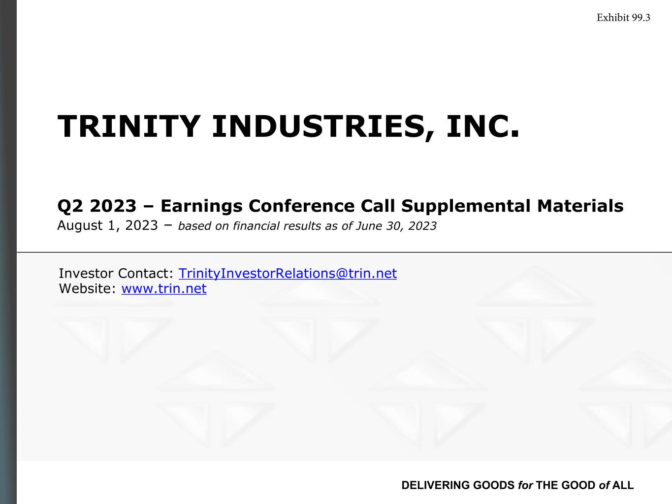 DELIVERING GOODS for THE GOOD of ALL TRINITY INDUSTRIES, INC. Investor Contact: TrinityInvestorRelations@trin.net Website: www.trin.net Q2 2023 – Earnings Conference Call Supplemental Materials August 1, 2023 – based on financial results as of June 30, 2023 Exhibit 99.3
